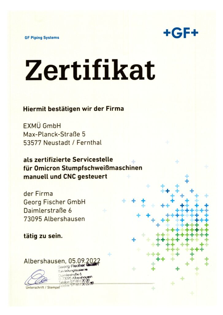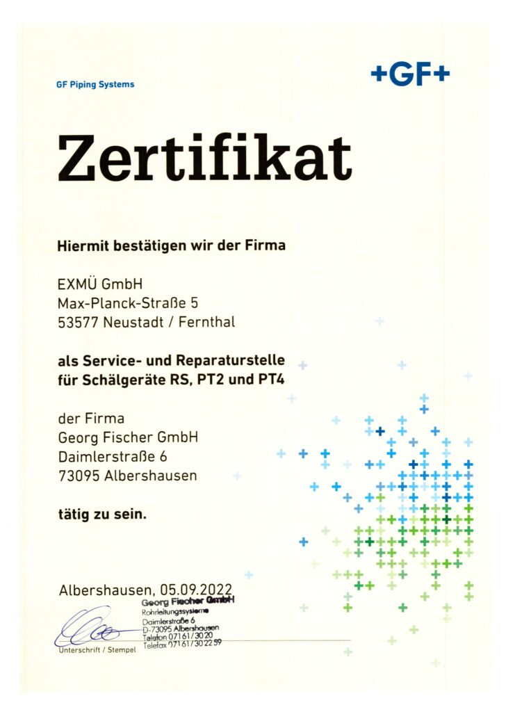 Wir sind nun eine zertifizierte Service- und Reparaturstelle der Firma Georg Fischer +GF+ und somit berechtigt die folgenden Gerätegruppen zu warten: