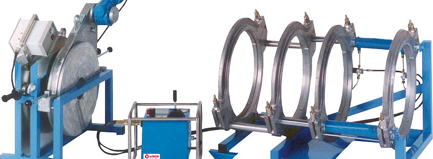 Mit den WIDOS Stumpfschweißmaschinen können PE-, PP-, PA- und PVDF-Rohre sowie Formteile von verschiedenen DA Durchmessern basierend der Maschinen Spezifikation bearbeitet werden. Die WIDOS Stumpfschweißmaschinen haben auf der festen und der beweglichen Seite eine Doppelspanneinrichtung mit Schnellspannung. Diese wird auf 2 Wellen geführt. Zum Anschluss an das Hydrauliksteuergerät befinden sich an der Maschine 2 flexible Schläuche mit Schnellkupplungen. Die Doppelspanneinrichtung ist mit dem Stahlrohruntergestell verschraubt. Das äußere feststehende Spannelement kann durch Entfernen von 3 Schrauben leicht abgebaut werden, um an schwer zugänglichen Stellen, z.B. im Schacht oder an der T-Stück-Abgangsseite, schweißen zu können. Durch Herausnehmen aus dem Untergestell kann die dann verbleibende Einheit als 3-Ring-Reparatur-Maschine eingesetzt werden. Die WIDOS Stumpfschweißmaschinen sind somit 4-Ring- und 3-Ring-Maschinen in Einem.